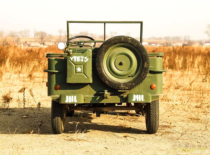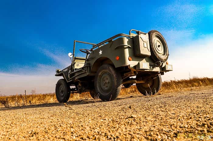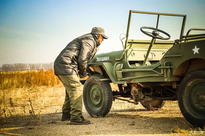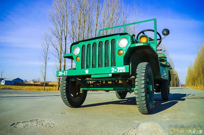 大爷手工打造了三台车子,眼前这台是第一辆车——大号威利斯。为啥称之为“大号”?因为大爷造的第二辆就是一台缩小版的小号威利斯,为了便于区分,以大小号来称呼。而第三台车,则是一台开山鼻祖路虎初代卫士。