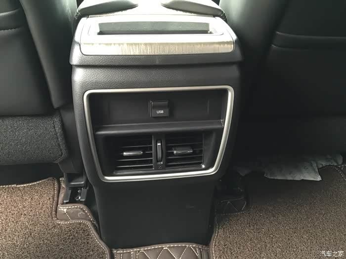 后排出风口简单了些,要是汉兰达那种带温度控制的就好了,上面的储物格设置不错,后排放下手机什么的挺好。