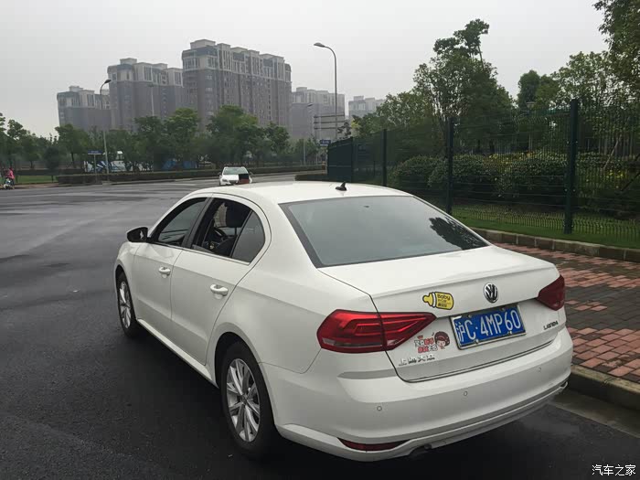 然后就找有现车的4s店,有黑外白内,和白外黑内。最终老婆大人喜欢白色的外观,觉得时尚,黑色的内饰觉得大气。期间我在4s点试驾了下1.6的朗逸,感觉起步有点肉,但是速度起来后(到30码),加速还是比较快的。我老婆听了很高兴(她没有试驾),适合她,速度是慢慢起来的。