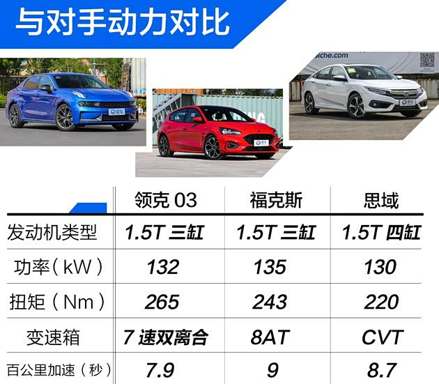 家用的话1.5t够用了, 都说三缸机抖动,这也不是空穴来风,抖就是抖,但通过机舱与驾驶舱的减震,作为驾驶者和乘客,在领克03里却很少会感到抖动的存在,在舒适性上还是挺为乘客们着想的。不过随着4缸版本的发布,还是感觉卖早了,论稳定性4缸还是占优势。
