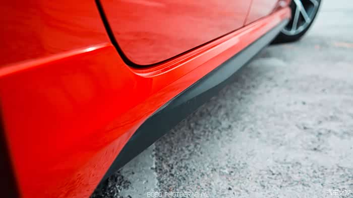 前保险杠两边的空气动力学导风口居然是真的镂空,姑且先不说具体有多大的作用,就冲它没做成一块黑色装饰板这一点,我就对它好感倍增