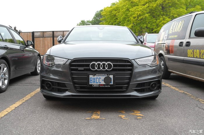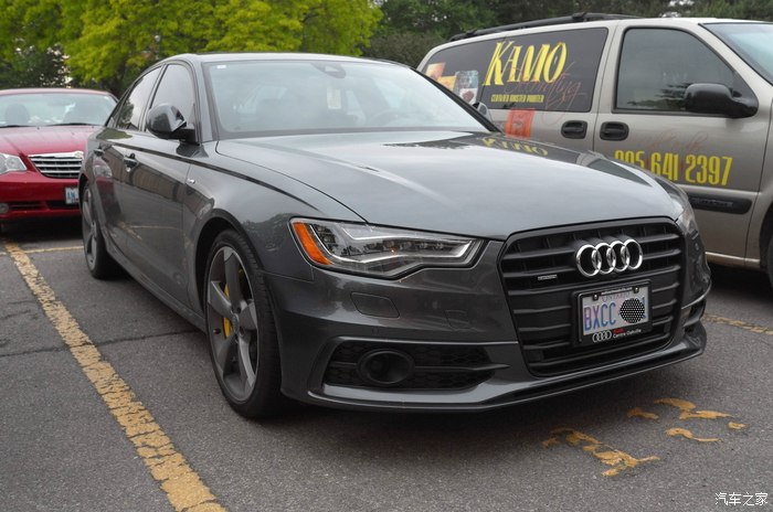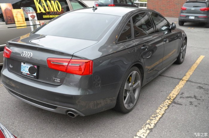 正面照,运动包围也是原厂选配的,跟A6L的外观不太一样 还有黑色包,车子所有镀铬的地方都变成了黑色