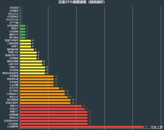 很多人的认知里,丰田车国内车型的用料就是比海外差,所以安全性肯定是不如海外的,但是通过相同测试标准的中保研和美国IIHS碰撞成绩对比下来,这种说法是站不住脚的,丰田在国内和海外的碰撞成绩一致,相反大众确实有着非常大的差异