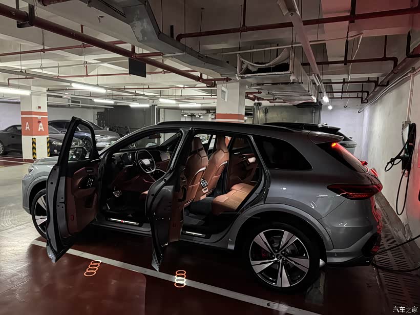 ? 外观/内饰:我定的是曼达洛银和红色内饰,由于我加了3000的权益包,21寸轮毂配上了,大连屏上了,头枕音响上了,后排加热上了,门板护手是翻毛皮材质的(这点比较吸引我),氛围灯有三十色(感觉也用不到这么多颜色啊),整车给我的感觉就是大,可能对比我原来是标轴旅行车的缘故吧,哈哈。