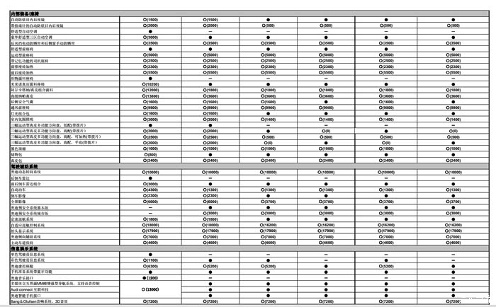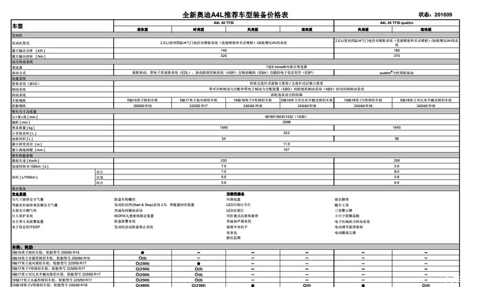 另附车型表对比图,自己看看新款A4L的车型有哪些区别。