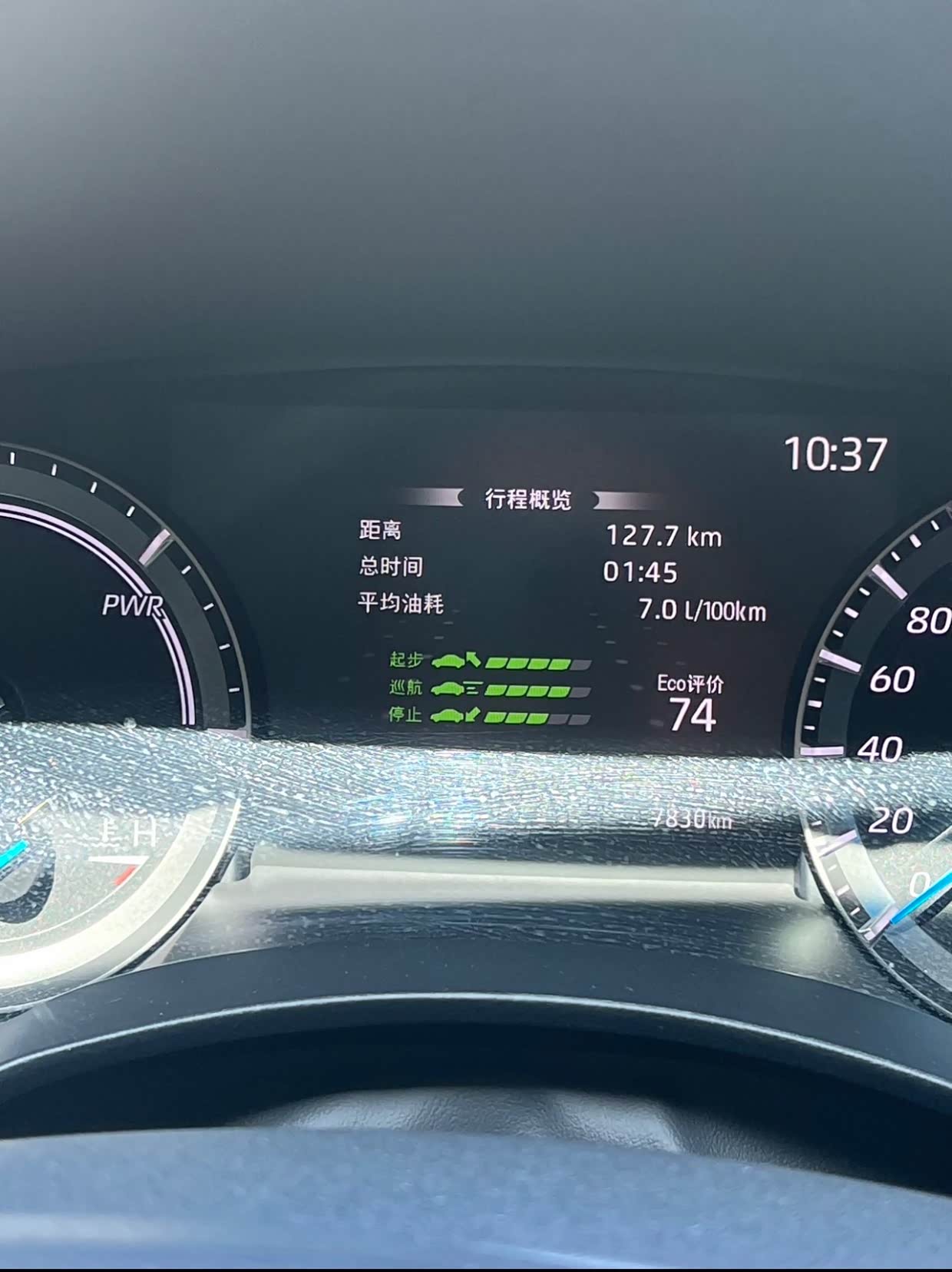 1:先说下油耗,双擎的车辆,高速行驶的时候,发动机和电动机是同时工作的,油耗比市区要高一些,7-8L的平均油耗,市区春夏季节,5.5-5.8L左右,冬季开暖风时间长,油耗要费一些,大概要9-10L,综合一公里6毛钱左右,目前行驶了17077KM的油钱一共花了10240元。
