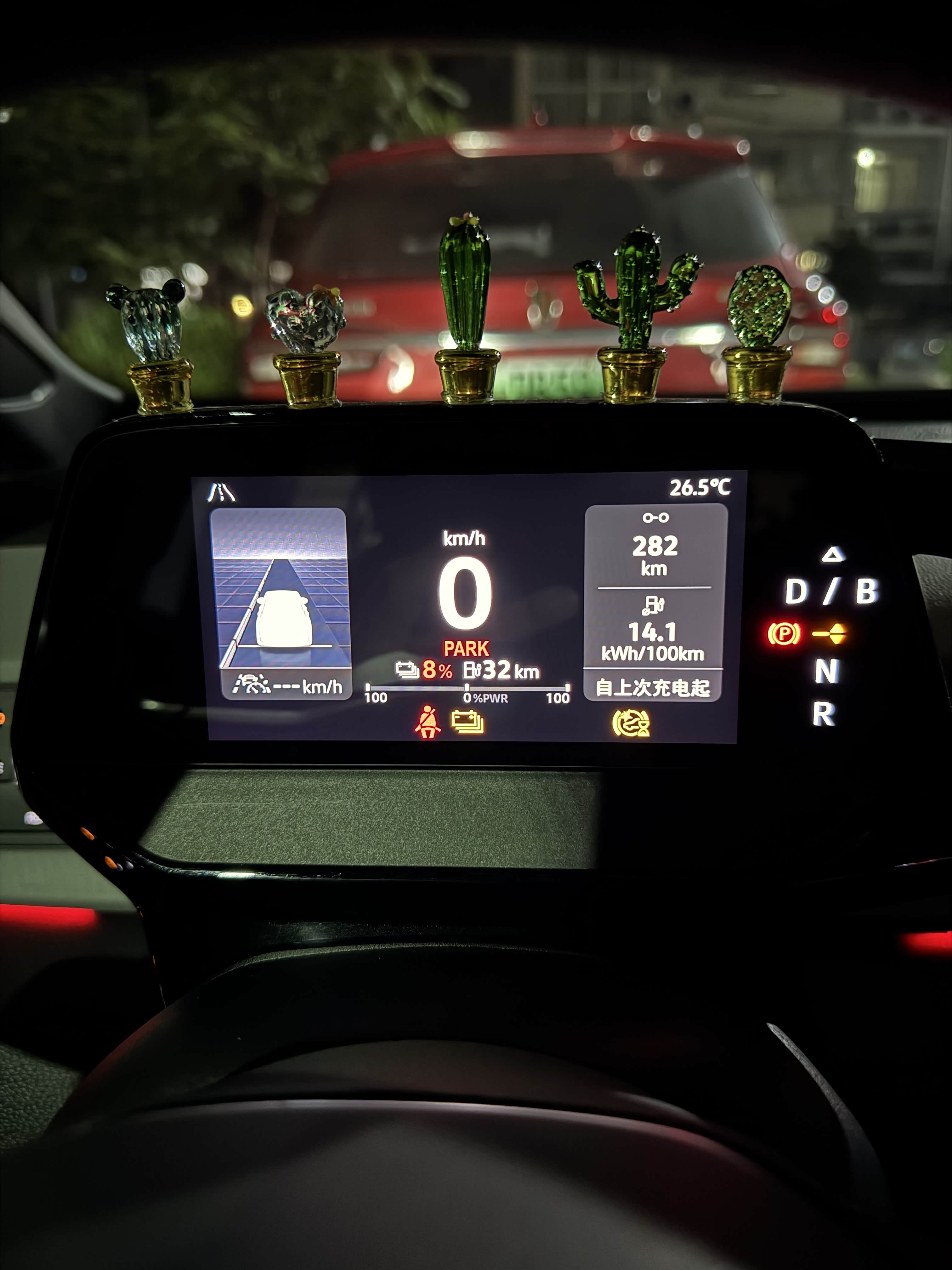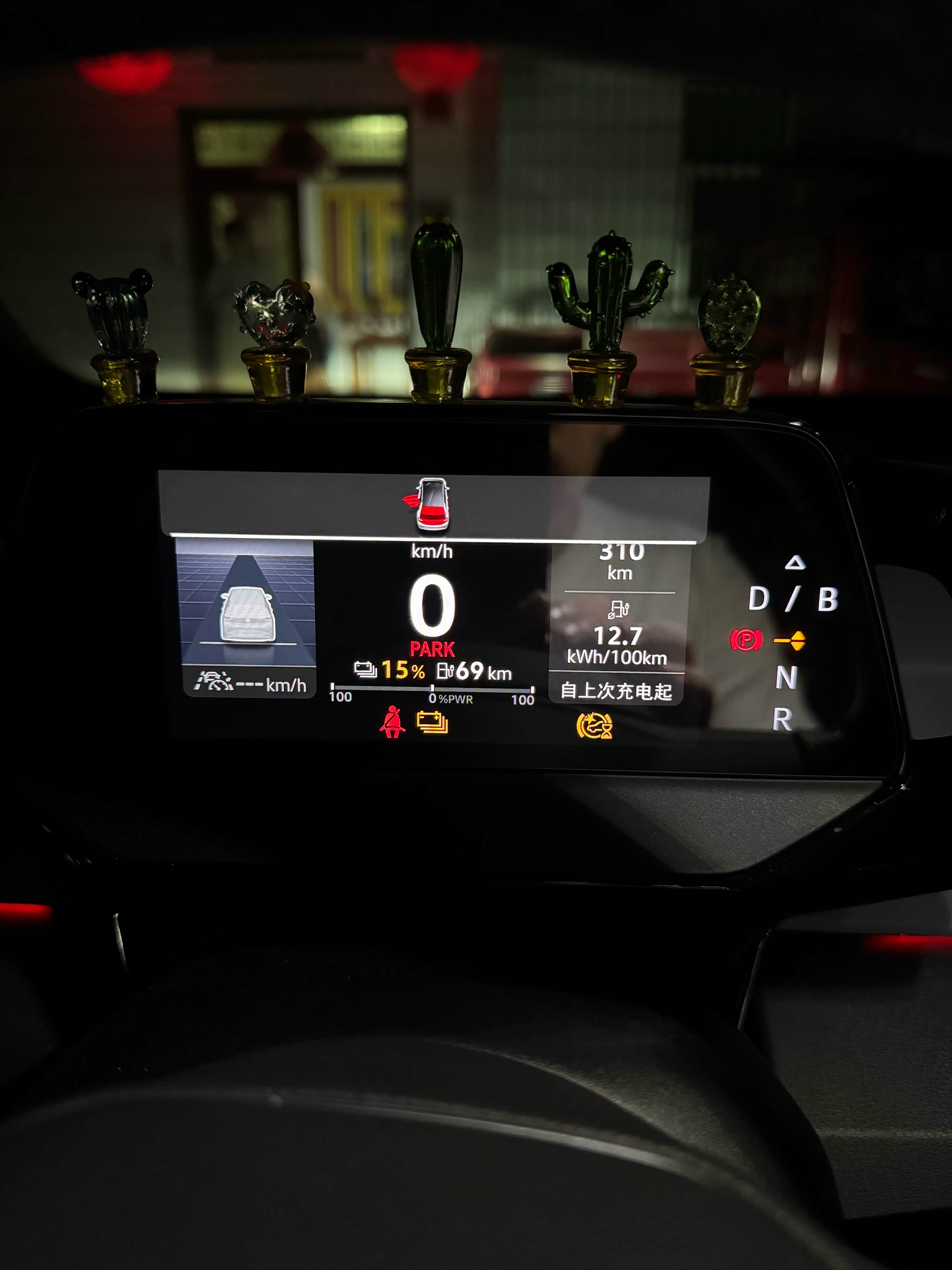 半夜上高速,车流依然不小,但好歹没有“堵死”,大部分时间能跑到100-120km/h的时速,比回家时顺畅太多了。我一口气跑了4个半小时,直到仪表盘提醒电量无法支撑我到下一个服务区,才就近驶入服务区充电。