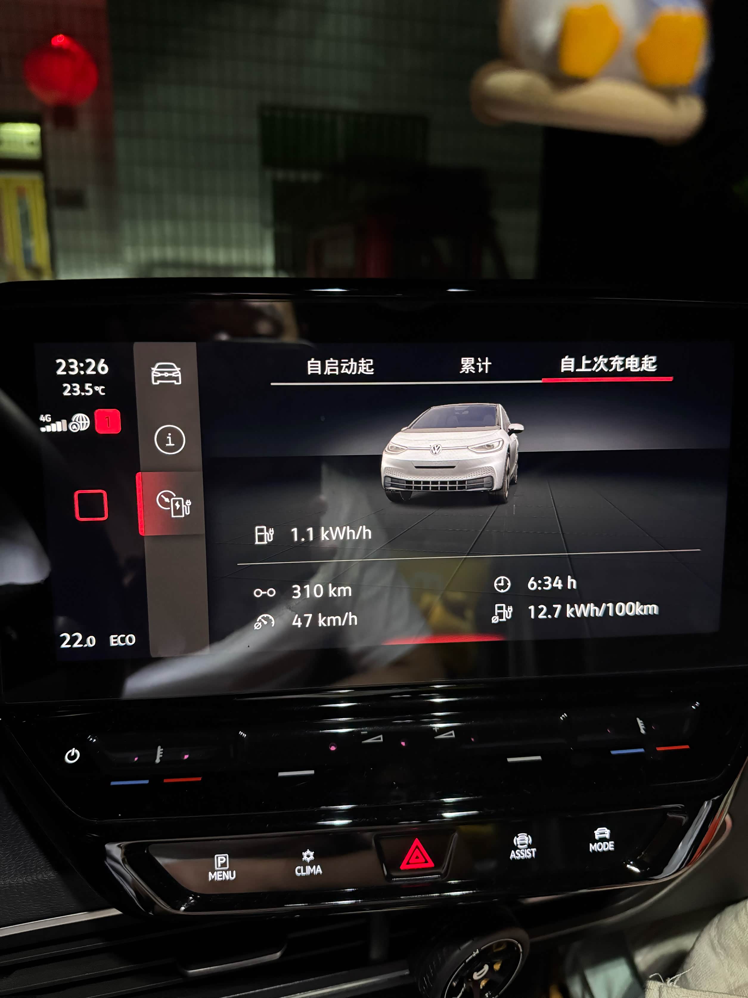后半程我和老婆换着开,路况依然是一路“荡”,最终在晚上11点整才踏进老家门。这后半段累计行驶了310公里,用时6小时34分钟,平均时速提升到了47km/h,平均电耗也降到了12.7,看来夜间气温适宜,车速稍快反而更省电。此时剩余电量15%,续航69公里。