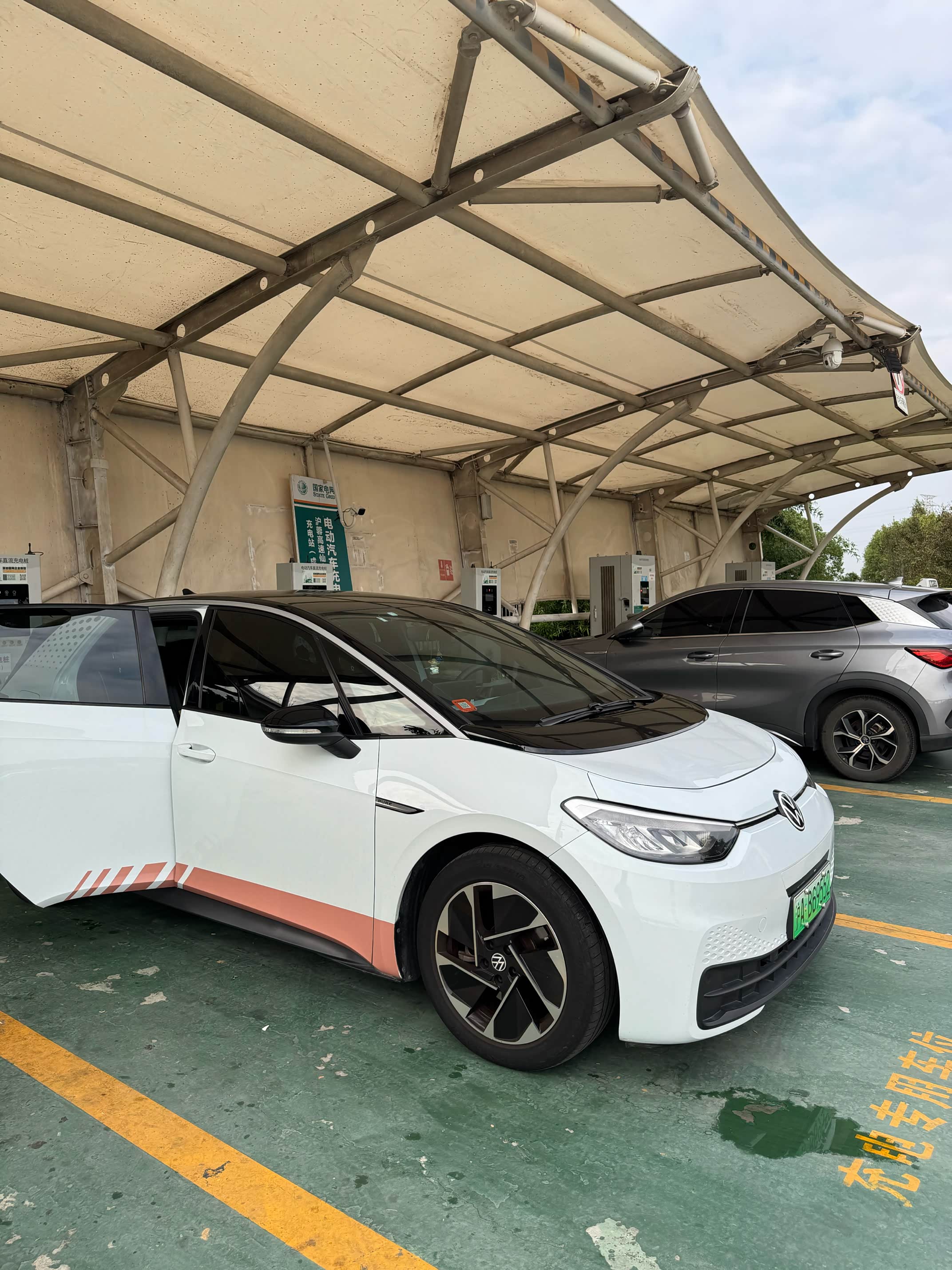 让我大为意外的是,服务区充电站根本不用排队!还有好几个空闲桩!这和我预想中“充电一小时,排队四小时”的场景大相径庭。分析原因,一是现在服务区充电桩建设得真多,这个站有20多个桩;二来,可能也有运气成分,正好赶上一个空档期。这让我心情大好,直接补电到95%,休息够了才出发。