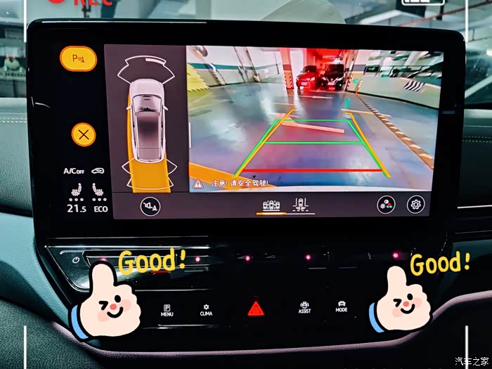 ID.4 X全系标配倒车影像,高配车型还配备了360度全景影像。摄像头分辨率非常清晰,为驾驶者倒车时提供了良好的视野。该影像配备了可随动转向的倒车辅助线和广角镜头,便于驾驶者更便捷地完成倒车入库等动作。