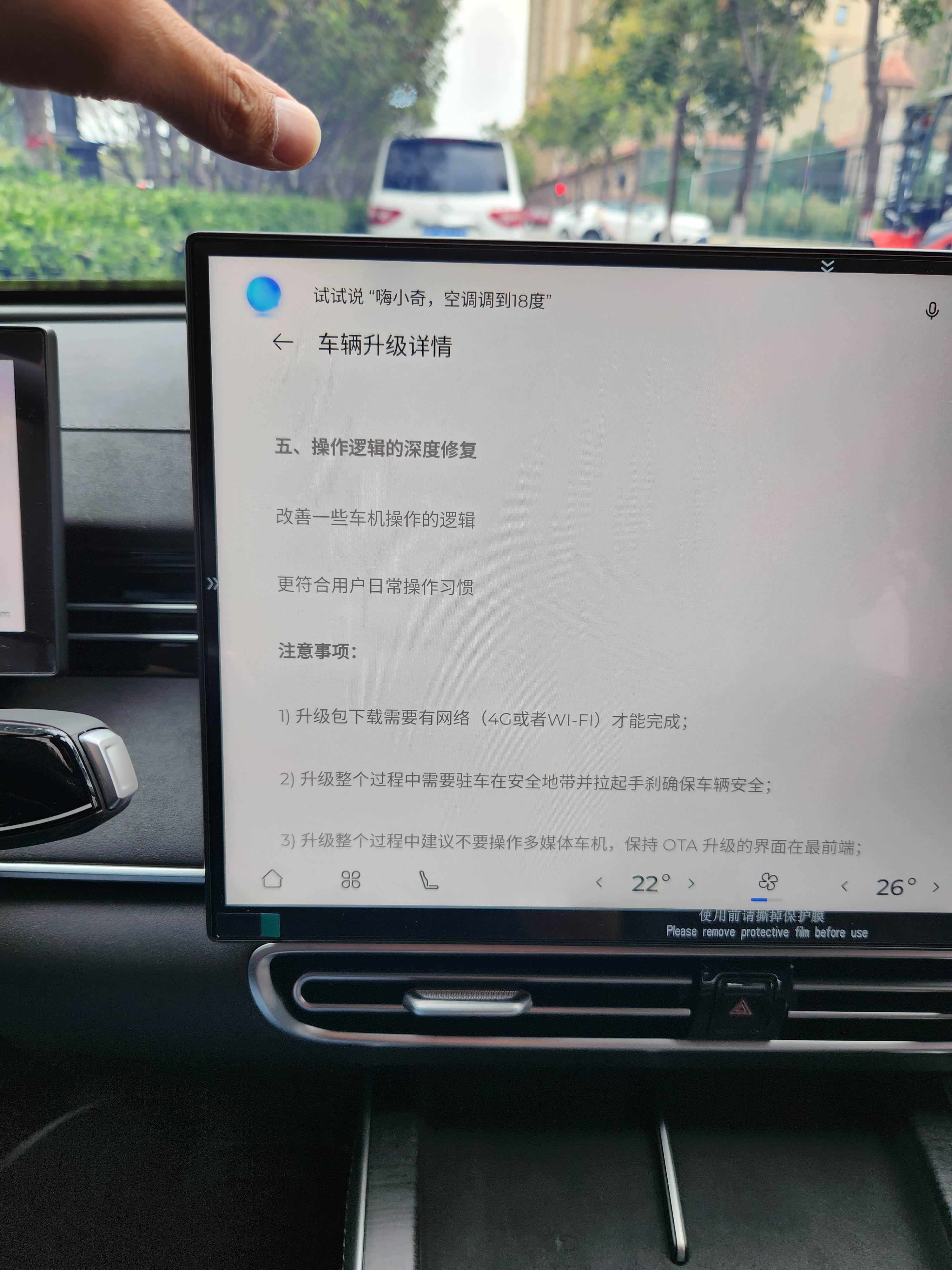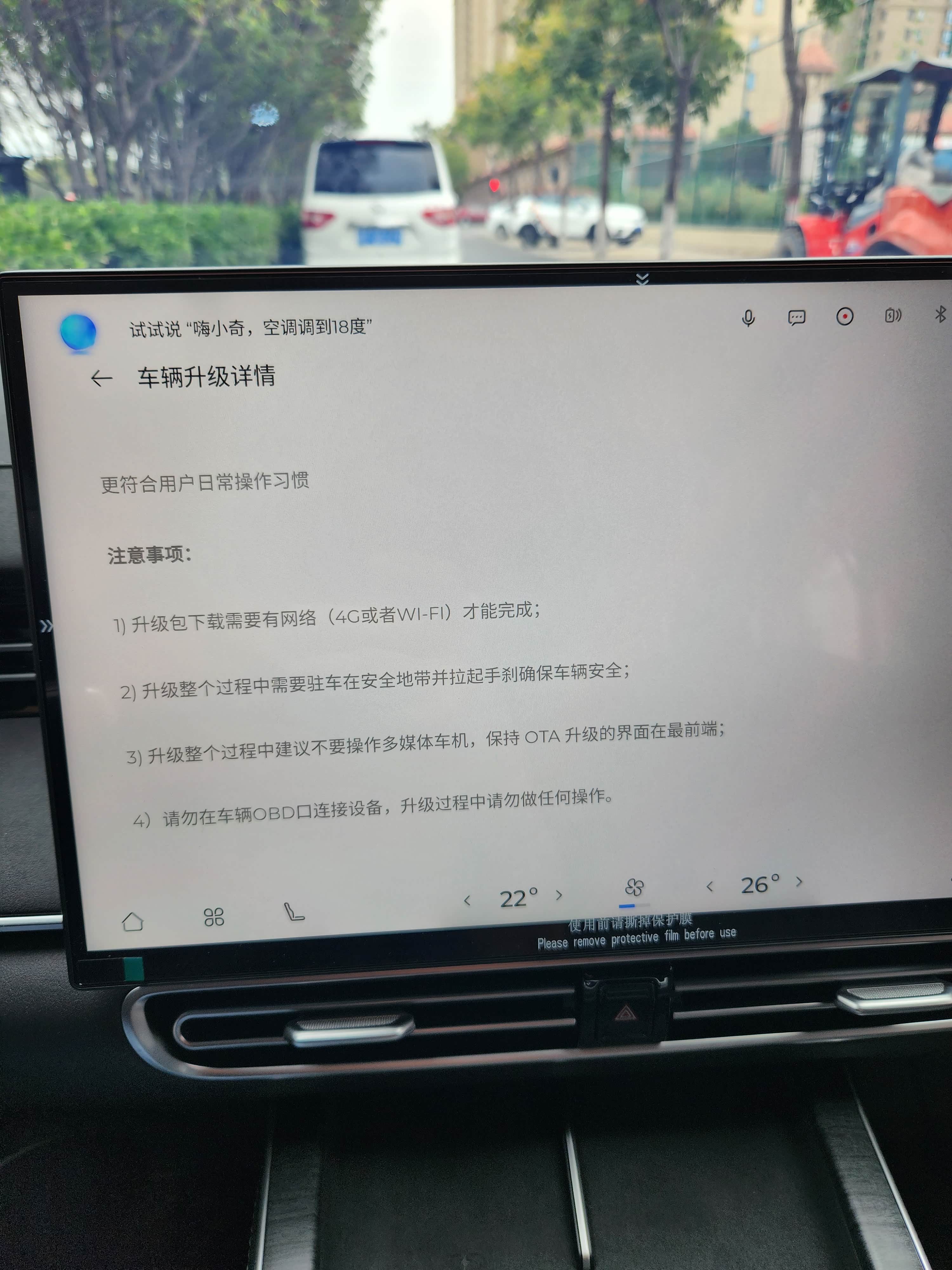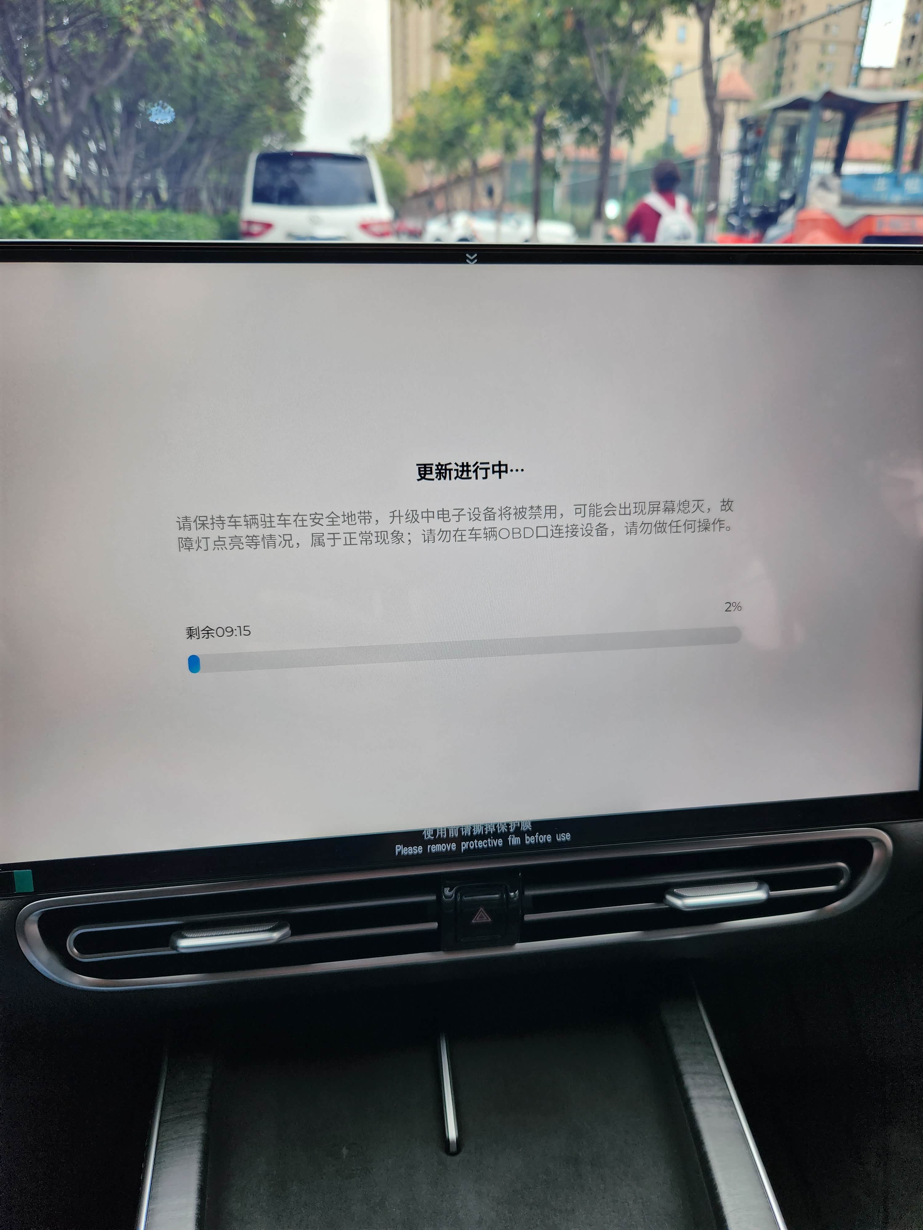 上个月在车机上收到了OTA升级提醒,升级过程 中,要保持车辆驻车在安全地带,升级中电子设备 将被禁用,可能会出现屏幕熄灭,故障灯点亮等情 况,属于正常现象;请勿在车辆OBD口连接设备,请 勿做任何操作。就可以点开升级了,升级很快大概 十分钟就升级好了, 主要升级了以下五项内容: