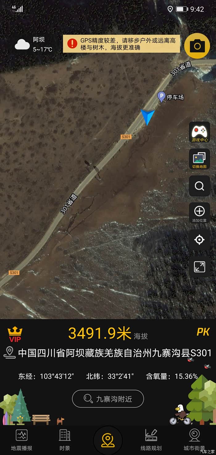 黄龙景区游览时间四个小时,索道上山步行下山,停车场海拔3100米,最高处五彩池海拔3600米,有高反的游客很少。但也有看到游客高反严重后被担架抬出景区。