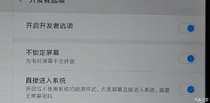 这里解释下,打开这两项之后,通电情况下不会息屏,会自动亮屏,这样的话,我们只需要把平板电脑用支架,架在你喜欢的地方,然后一直连接着数据线,插在中控台上的usb口上。这样的话,每次启动车,它就会通电,通电自动亮屏,并且不会息屏,美滋滋!停车熄火,断电后它就会过十几秒息屏(待机几乎不费电)完美适配,然后启动车它还会充电,这样平板就一直会处于满电状态!就像跟着车的系统一样】