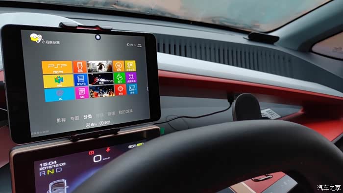 [3]用支架把平板放在任意你喜欢的位置,ok这就大功告成啦!跟车完美适配,启动车,平板自动秒亮屏进系统,熄火,自动息屏。这样一来车里就有智能系统了,大家可以下载个Q音乐,视频,反正安卓系统想下什么app都可以!这里给大家看下我主要用的,Q音乐,小鸡模拟器(用蓝牙手柄没事在车上玩街机玩fc)