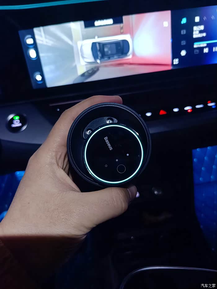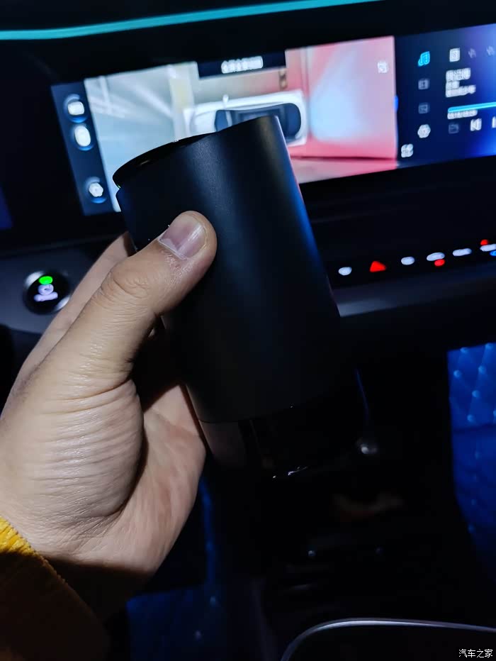 最后我选择了我认为最合适的位置,就是杯座。极狐708s有两个杯座,一个用来放香薰,一个用来放水杯,正合适,这个位置也不影响任何视线,分散注意力等等。