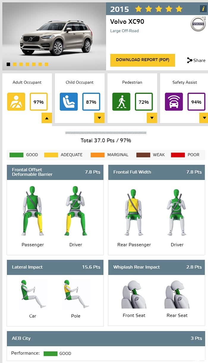 我的要求在我老婆的基础上(最后给我省了好多。。。)四驱+T6,音响(至少是哈曼或者bose,看车型,BO和BW我知道预算肯定没戏),空悬(如果选SUV的话),LED灯,最后就是要看安碰撞测试的数据,IIHS和E-NCAP,有了娃,侧重点完全就变了,再也不想着和人家飙车,遇到讨厌的也不想再去“教育”他,遇到加塞的也不会怼上去,红绿灯再也不想着地板油。。。虽然说碰撞测试只是一个数据,不能代表事故发生时的真实情况,但是总有一个横向标准可以考量,说白了就是看个心里踏实