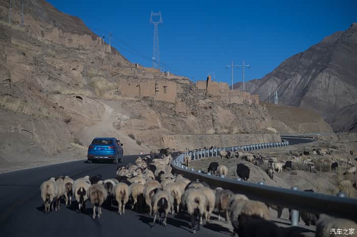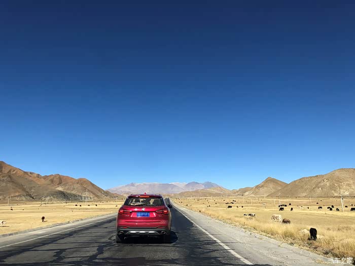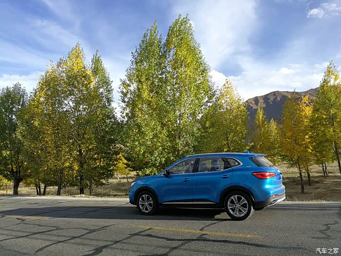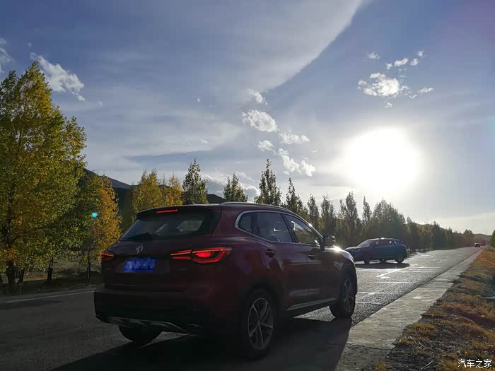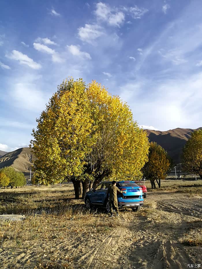 秋色配蔚蓝,高原配天空。缝缝补补的路面完美被底盘过滤掉了,舒服!