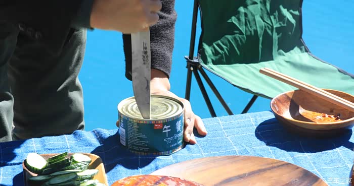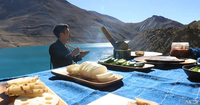 在途经满拉水库的时候,停下来休息。早餐就在风景优美的满拉水库边上,煮了一顿高原火锅。