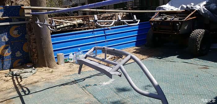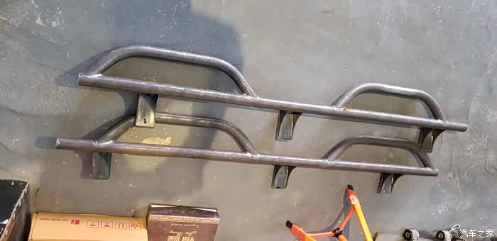 先从外观开始吧,这次主要更新的就是轻量化的前杠和侧踏,全部自己手工打造,在强度和质量里面权衡以后,前杠主体钢管采用45管,侧踏采用38管,护板采用航空铝激光切割后折弯制造。全部链接螺丝采用12.9高强度螺栓。