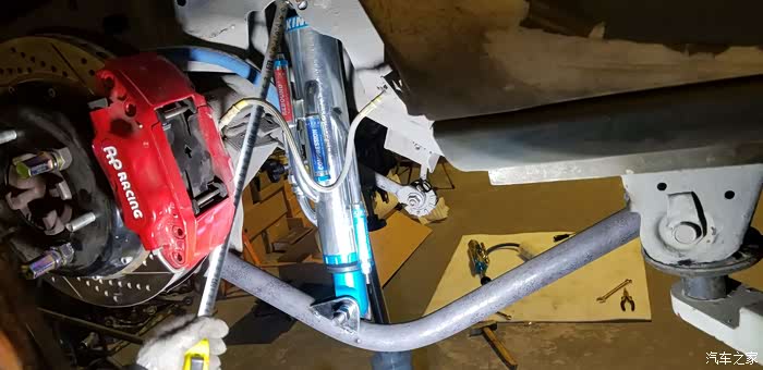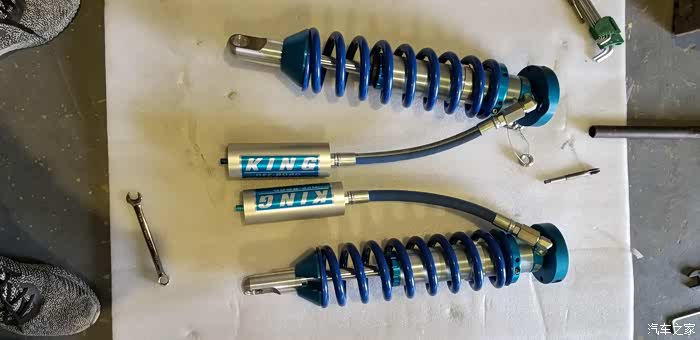 整车完工后最近挑选了很多大小颠簸路段进行实际测试,发现驾驶感受有质变,高速跑颠簸路段车内感受非常平稳,减震的行程和合适的阻尼吸收了所有的冲击力,有一点baja赛车在戈壁急速飞驰的感觉,后轮的大的下拉行程在过炮弹坑加交叉轴时有了更好的附着力,轮子不用腾空也用不上轮间限滑就可以脱困。由于这次采用了比较保守和方便安装不破坏原车的方案,所以行程没有达到预期的目标,不过留了一手(加宽6寸,后轮改半浮式,长刀臂的方案,前后行程360+400)方案以后考虑实施