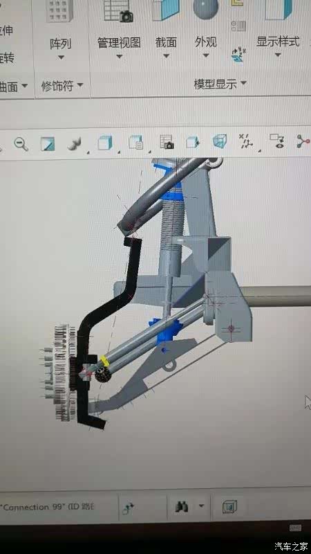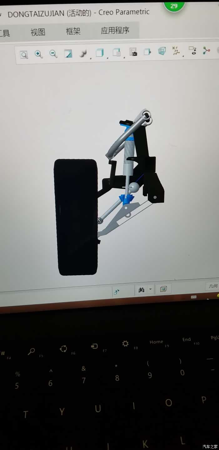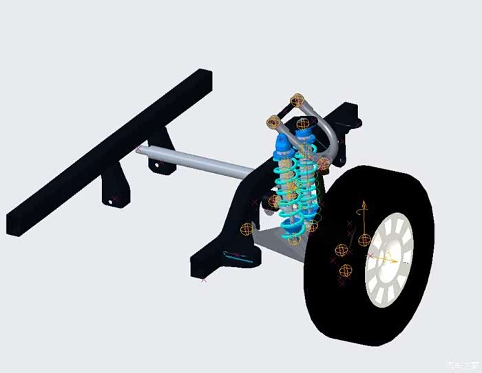 下来说说底盘部分,由于这次的方案不割原车,全部原装位安装,所以前后行程达到了290+320 mm(原车230+180,正常升高以后的行程差不多也就这么多)。先对底盘进行画图模拟,然后对各球头分析最大工作角,不满足的进行替换,首先就是原车半轴,由于原车半轴采用三叉式的,所以工作角只有30度左右,然而大行程的球笼应该是滚珠式的,可以达到47到50度的工作角,联系国内赛车专业半轴厂商以后定制了原车长短大行程加强半轴后解决了这个技术难题。