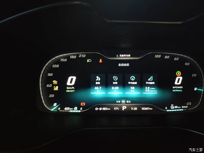 --馈电模式:没怎么出现过,不好评价。有一次故意只充了一次电,大部分路段畅通的情况下,油耗6.8L/100km,也算比较低的。一箱油跑500km是没问题的。