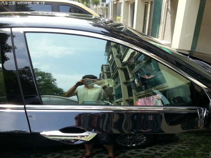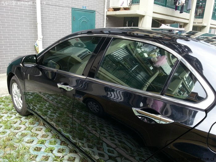 看官们自由发挥的看吧。。。。送的膜不好而且是全黑的,本来就黑色的车,贴了送的膜整个车就黑乎乎的,白天不见阳光、晚上不见五指。。。自己到外面重新贴了靓膜,个人觉得黑色车配这个颜色的膜比较大气。