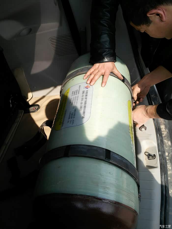 80的天然气罐,论坛里的那位大哥换的是70的罐子。我这是80的,换后第三排座椅放不到底卡扣卡不住,但是不影响做人。考虑到第三排经常不座人就没有往前移动座椅。