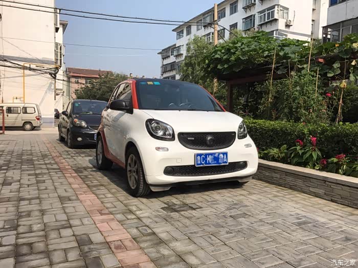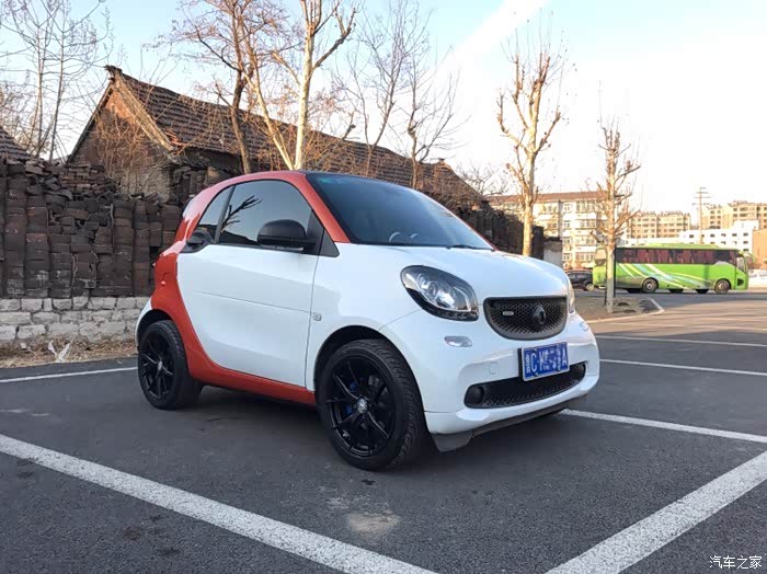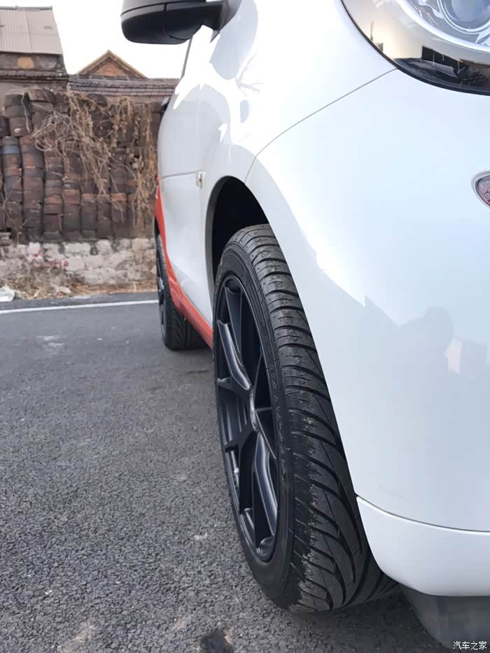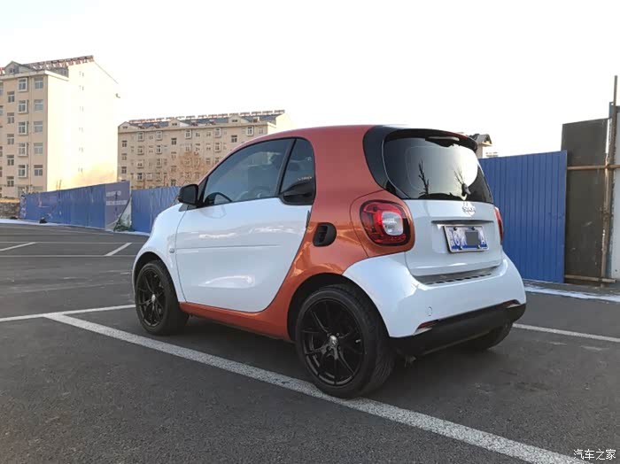 smart已经提车两年多了,一直也没做一个作业,这次就做一个小改装的作业吧,记录一下这两年多来的改装。提车那天在4s店,smart在这里等着我们想要橙黑结果种种原因提了白橙回家几天后smart迎来了他的第一场雪从楼上看像块小面包广场上smart显得格外小了,很萌很可爱受不了原装的卤素灯,自己找人改了透镜氙气灯大灯效果相当好海拉5透镜,近光远光,亮瞎远光狗的眼眼睛比原来有神了大灯效果不错个人比较喜欢黑色元素,换了个碳纤维前标这一抹橙色在阳光下特别漂亮前进气格栅上安装了BRABUS标志基本接近我心中的完美了,剩下的就是轮毂了订的轮毂来了配的南港的轮胎,胎噪大就大吧,本来发动机噪音就不小,而且我对静...