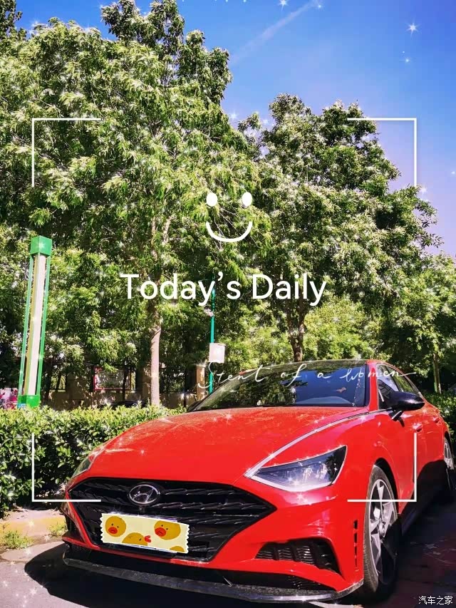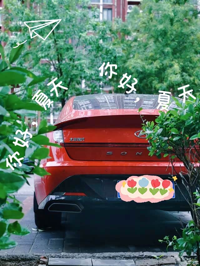 现在正是夏天,阳光正好的时候,路边上好多都是绿油油的树木,红色的索纳塔与绿色的树木形成了一个颜色的鲜明对比。感觉我们北京现代这个红色的索纳塔随手一拍都是一种大片的样子,自带光芒的帅气!