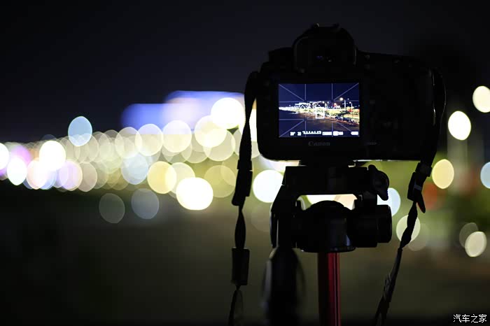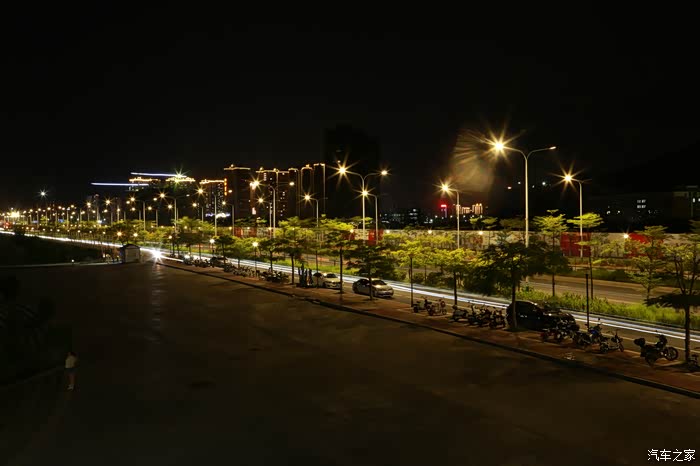 站在桔子馆台阶上,拍摄路边的来往车辆,我想拍个车流夜景