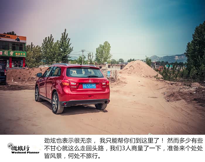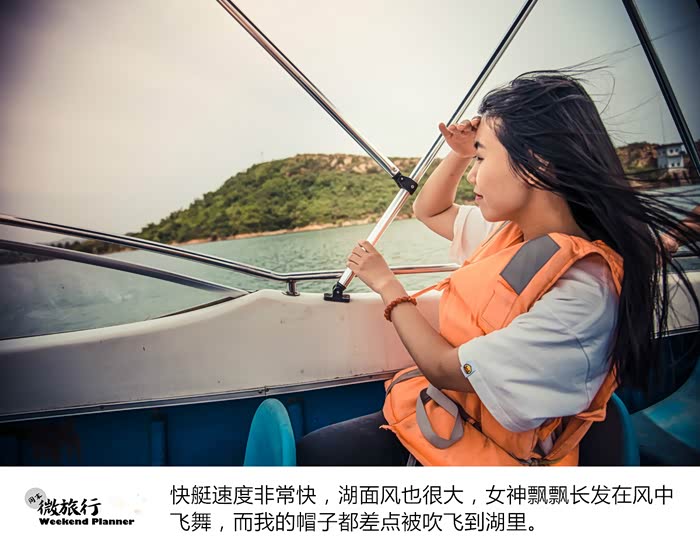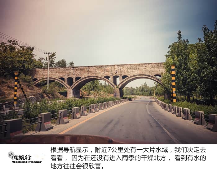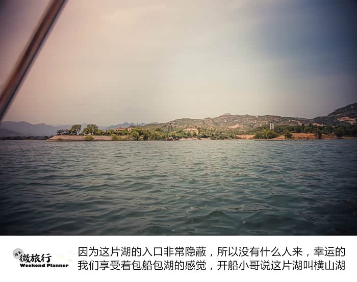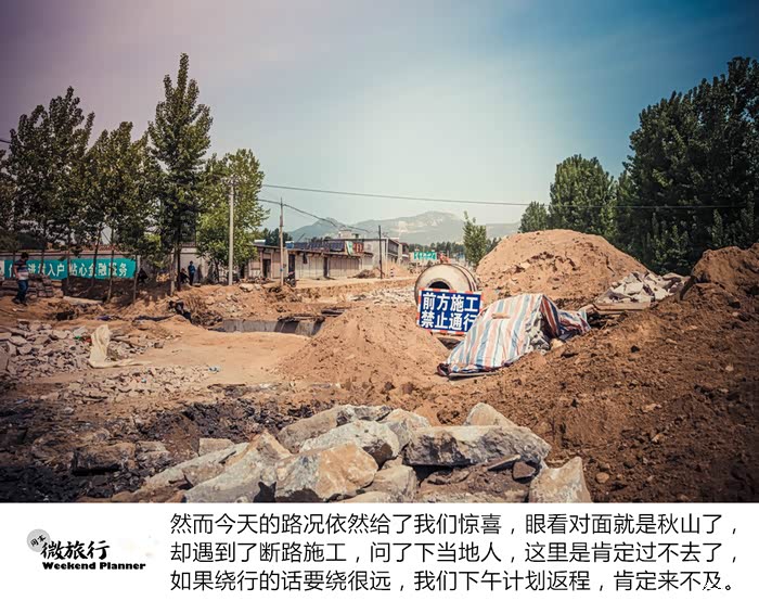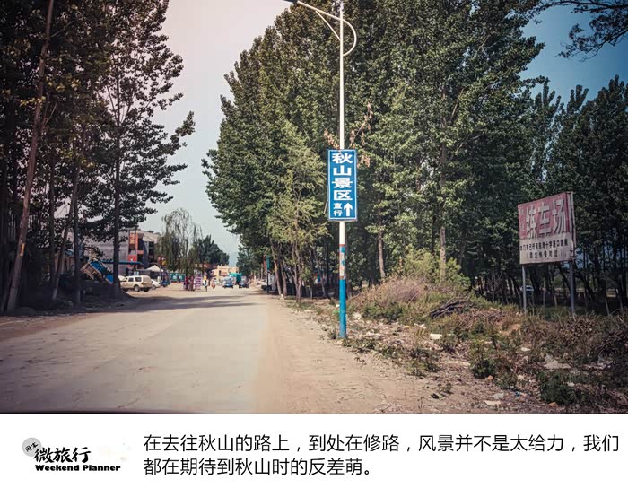 4.秋山行程因施工断路临时调整:自驾当中有很多不确定的因素,所以就需要随机应变。从灵寿县城距离秋山大约40多公里,但都是县道,比较难开,我们已经到秋山脚下的时候,不巧断路施工过不去了,问了当地一位大叔,说绕道的话,要绕好远,大叔看我们举着手机录视频,还问是不是在做直播,大叔很潮嘛!哈哈。看看时间已经快11点了,去不成秋山就返程多少有些遗憾,不过女神一句话让我很感动,女神说处处皆风景,何处不旅行?所以我们边走边看风景,无意中发现了一片美丽的水域——横山湖,所以才有了坐快艇的桥段。