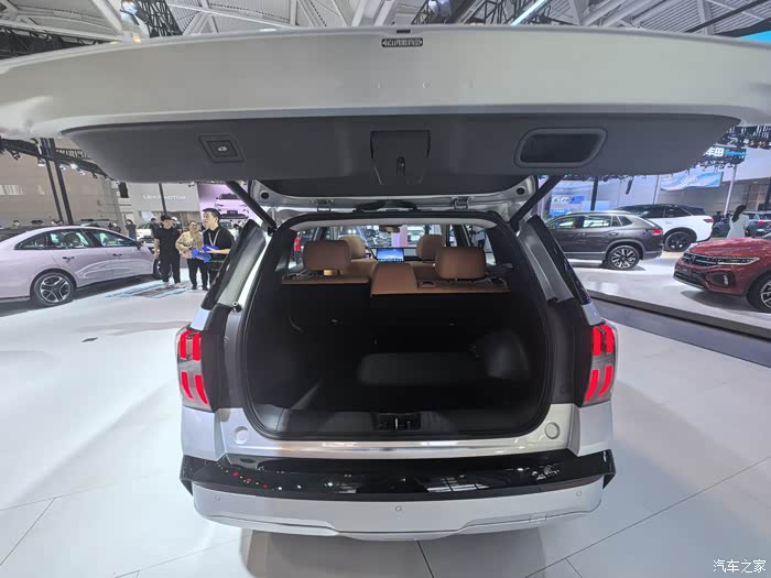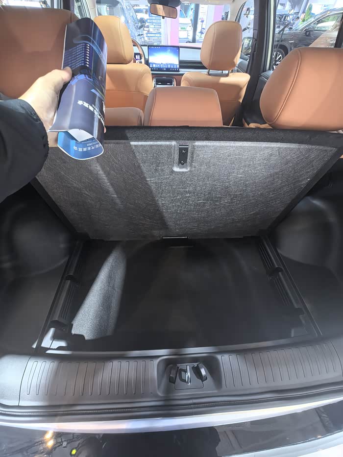 体验完了车内,来到我很关心的后备箱,因为家庭用车不仅需要乘坐空间大,后备箱的容积也是非常重要的,经过咨询工作人员得知正常状态下霸王龙的后备箱居然达到了427升的容积,如果把后排放倒空间则翻倍增加到达了987升,另外在盖板下还有一个下沉空间,真的是不仅把空间做到的极致的优化又给你日常的想行车物品做了分层区分,方便省事还能装