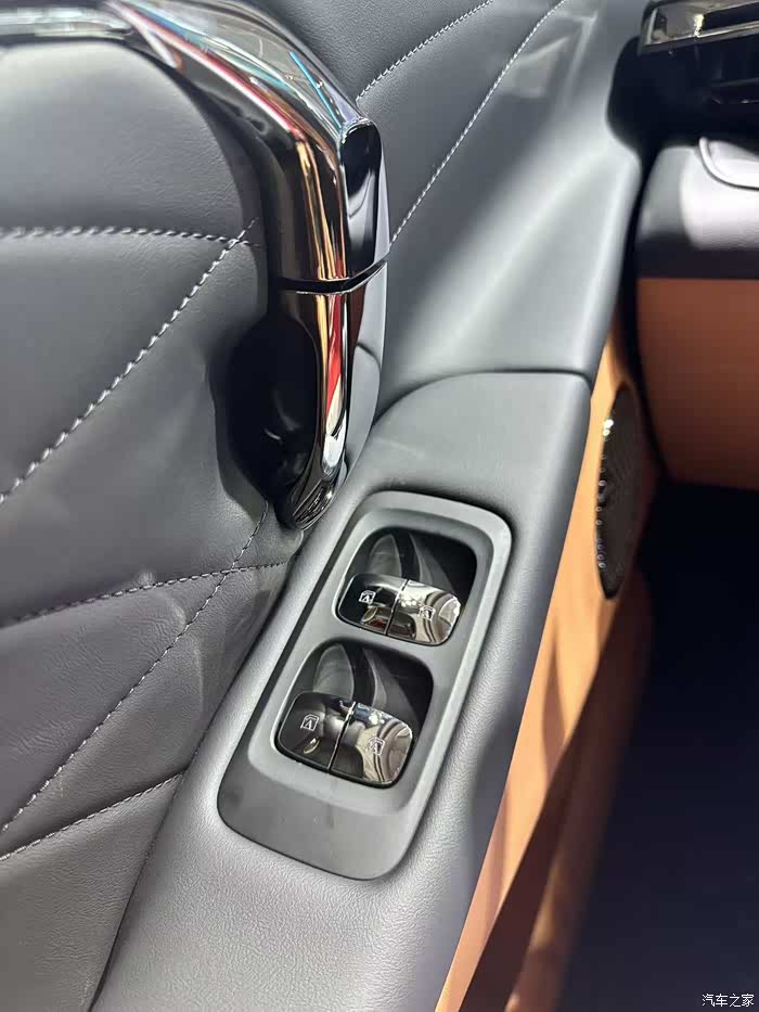 然后我开始注意到一些细节,比如全软覆盖的侧门配合上亮银镀铬的玻璃升窗按键,有一些豪华也有一些现代感,完全不突兀的设计继续加分
