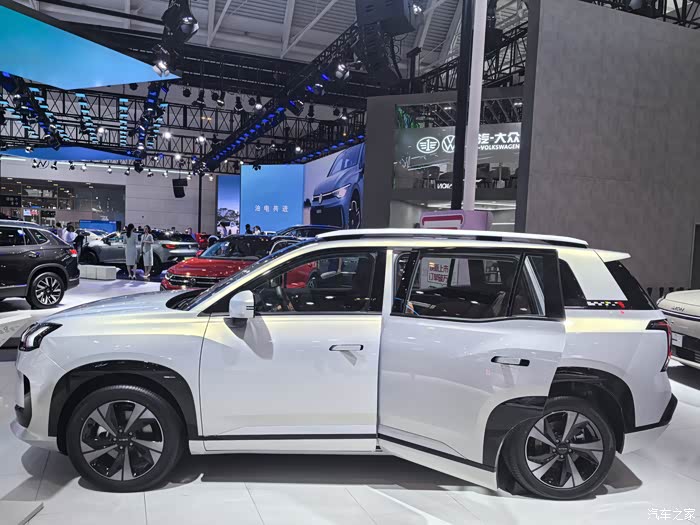 由于我是顶门去的,刚到的时候观众还不是特别多,但是展台上已经有工作人员在介绍车辆了,展台展出了埃安全家福车型,一眼望去给人一种感觉就是无论你是什么需求,在这里总能选到你想要的