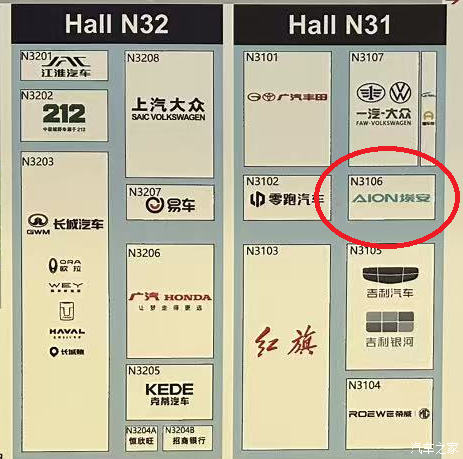 广汽埃安展台这次位于天津国际车展N31馆的 06号展台,离出入口很近非常方便的就可以找到