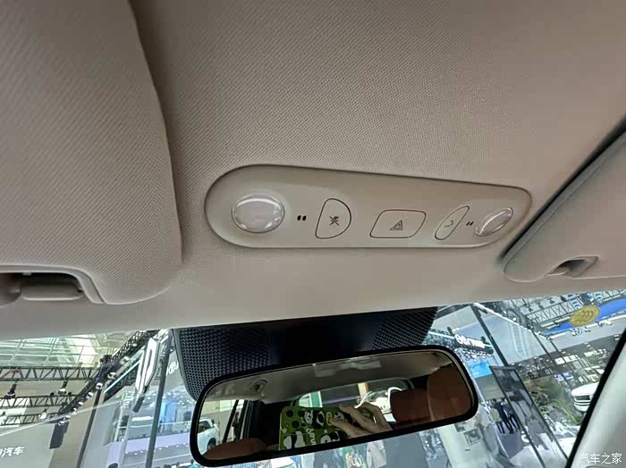 顶棚是白色织物,对比中控的黑橙配色有很好的氛围衬托,触控的阅读灯与三个物理按键也设计的恰到好处,当然这里希望大家永远都用不到SOS那个按键呀