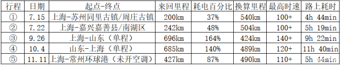 行程④10.4山东-上海全程平均速度58.7km/h。是因为遇到两次大堵车(11km开了70min,18km开了93min),最高两段行程平均速度84km/h能耗15kWh/100km、平均速度91km/h能耗16kWh/100km,和行程③相比能耗下降十分明显,左下角蓝色动能回收能量32.2kWh也是比行程③22.5kWh多43%的哈。