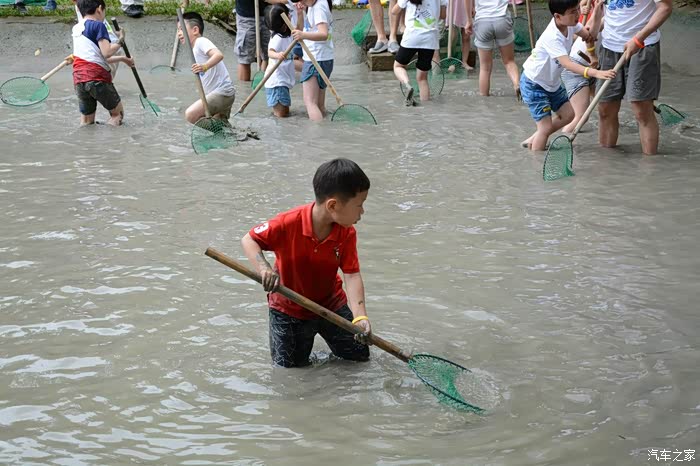 早已等待在场边的小朋友和大朋友们立刻挽起袖子、捞起裤腿开始抓鱼战斗。