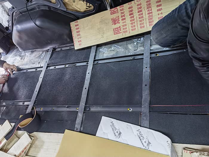5.做完隔音装副车架,难易程度:★★★★,最好有一个人帮忙,搬运,安装副车架,找平,紧固螺丝,原车地盘都预留好了,历时2小时;