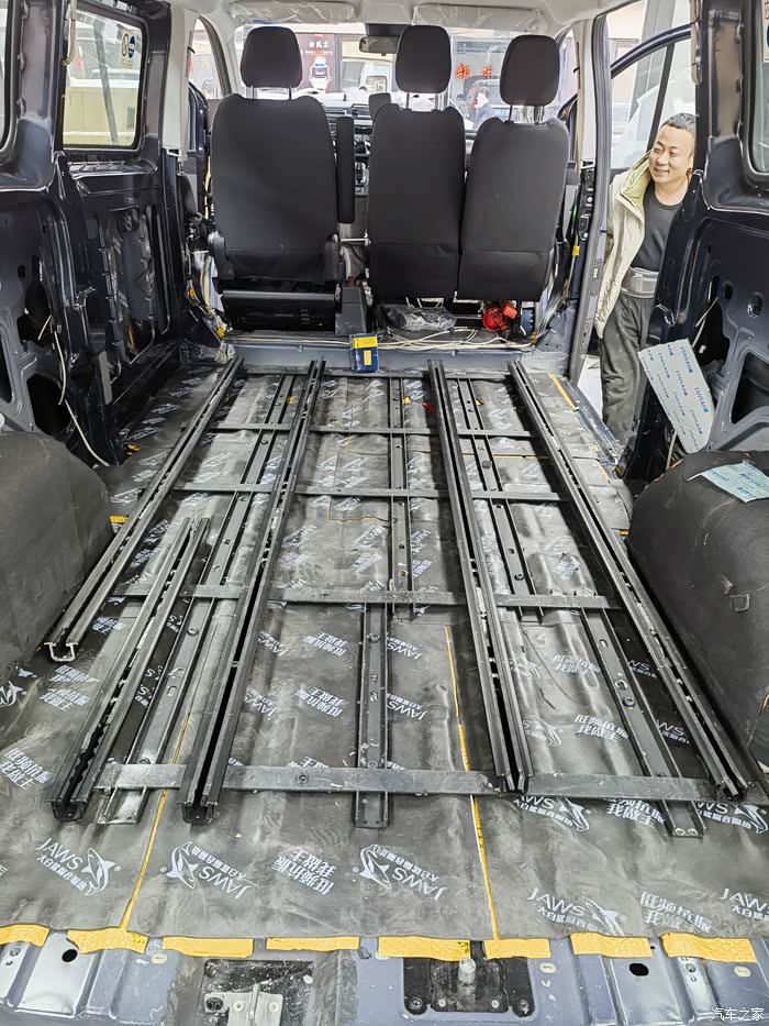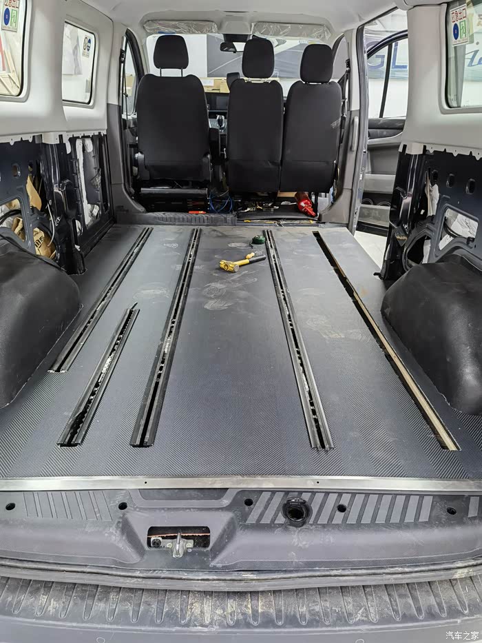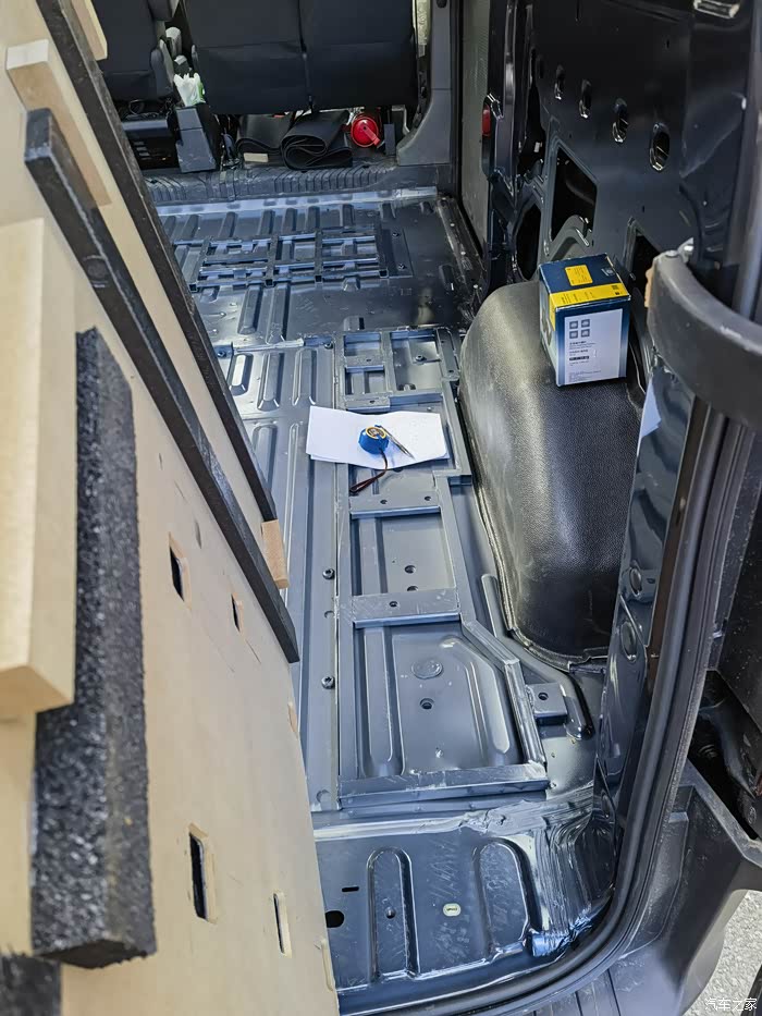 8.后仓内饰板安装:难易程度:★★★,需要研究内饰位置,内钢板钻孔,装卡扣,固定,历时1天。