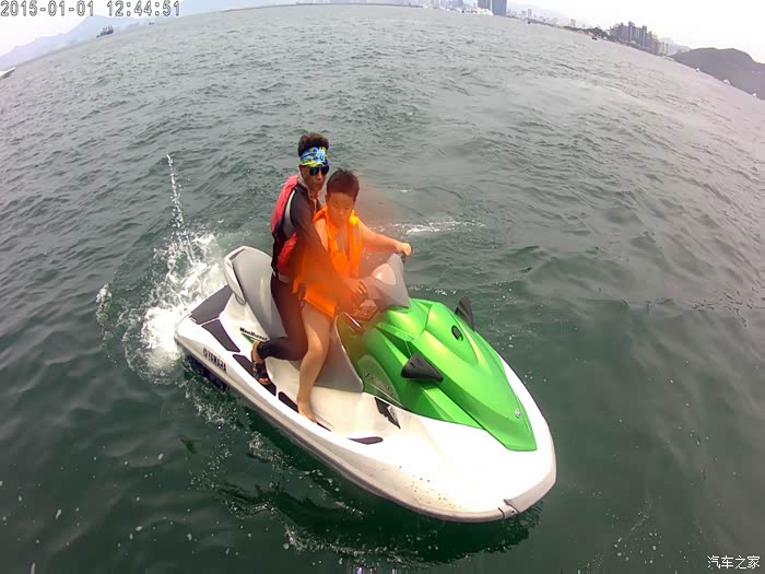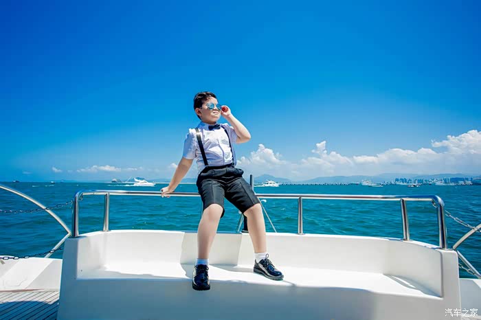 第二天,胖儿子出海游玩,这个摩托艇,开始他还不敢坐,后来坐了一次后,感觉超过瘾,下来就说:“我还想坐一次”,可是这个是凭票的,一人一次。没办法,同时的伯伯自己不坐把票让给了他,这下满足了