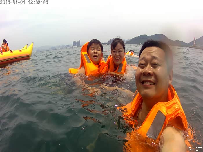 一家人在海中浮潜,这可是在较远的海中哦。海里有不少水母,而且个头很大,胖儿子开始漂了一会,怕被水母蜇,也不管我们在后面喊,独自游回了游轮。