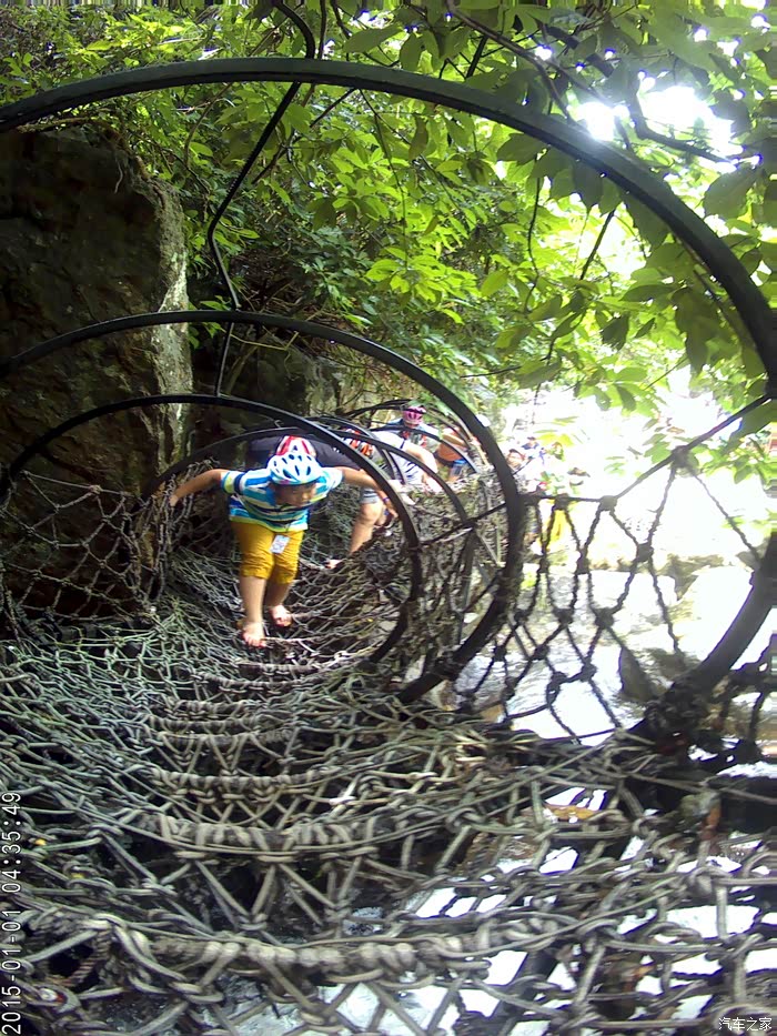 第三天在呀诺达热带雨林中的踏瀑嬉水拓展运动对他来说确实是个考验,不过在我们的鼓励和威胁下,他坚持走完了全程,很赞