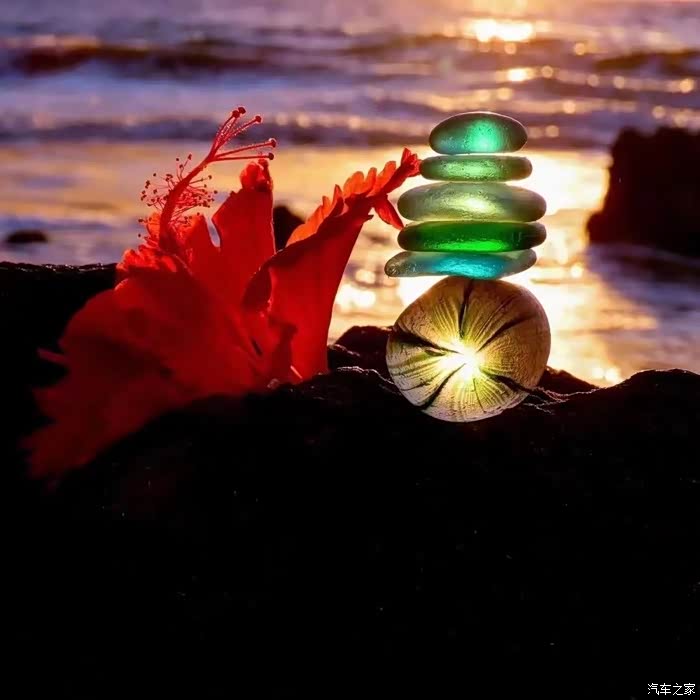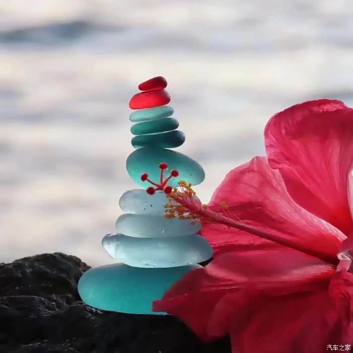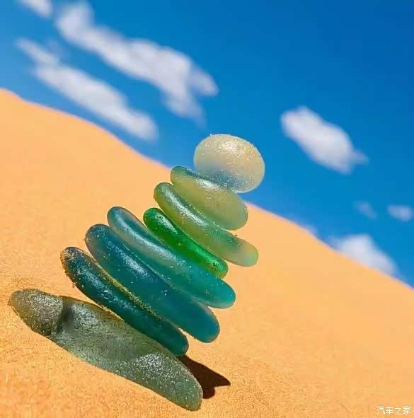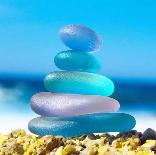 创意海边彩色透明石头叠加拍摄更有趣