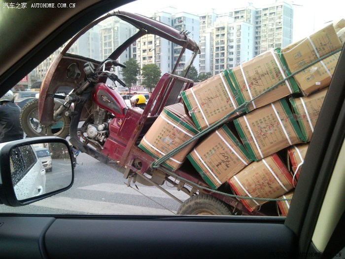 巧拍小伙骑3轮因货物沉重车头翘起 (不嘲笑 但狠搞笑 )