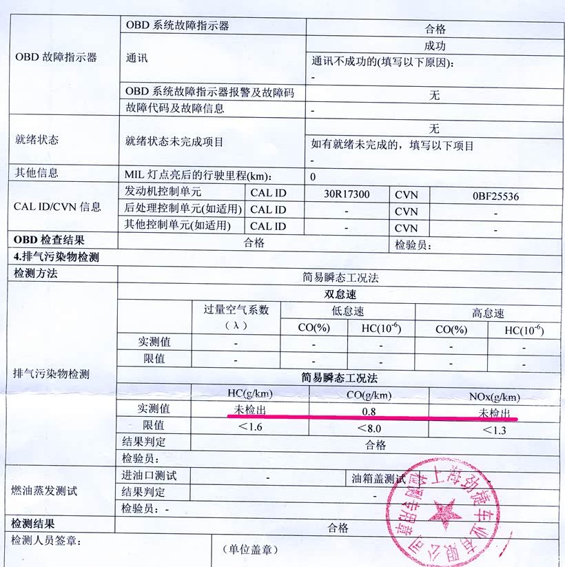 到10年验车,国V的车子,三个尾气指标,两个都测不出