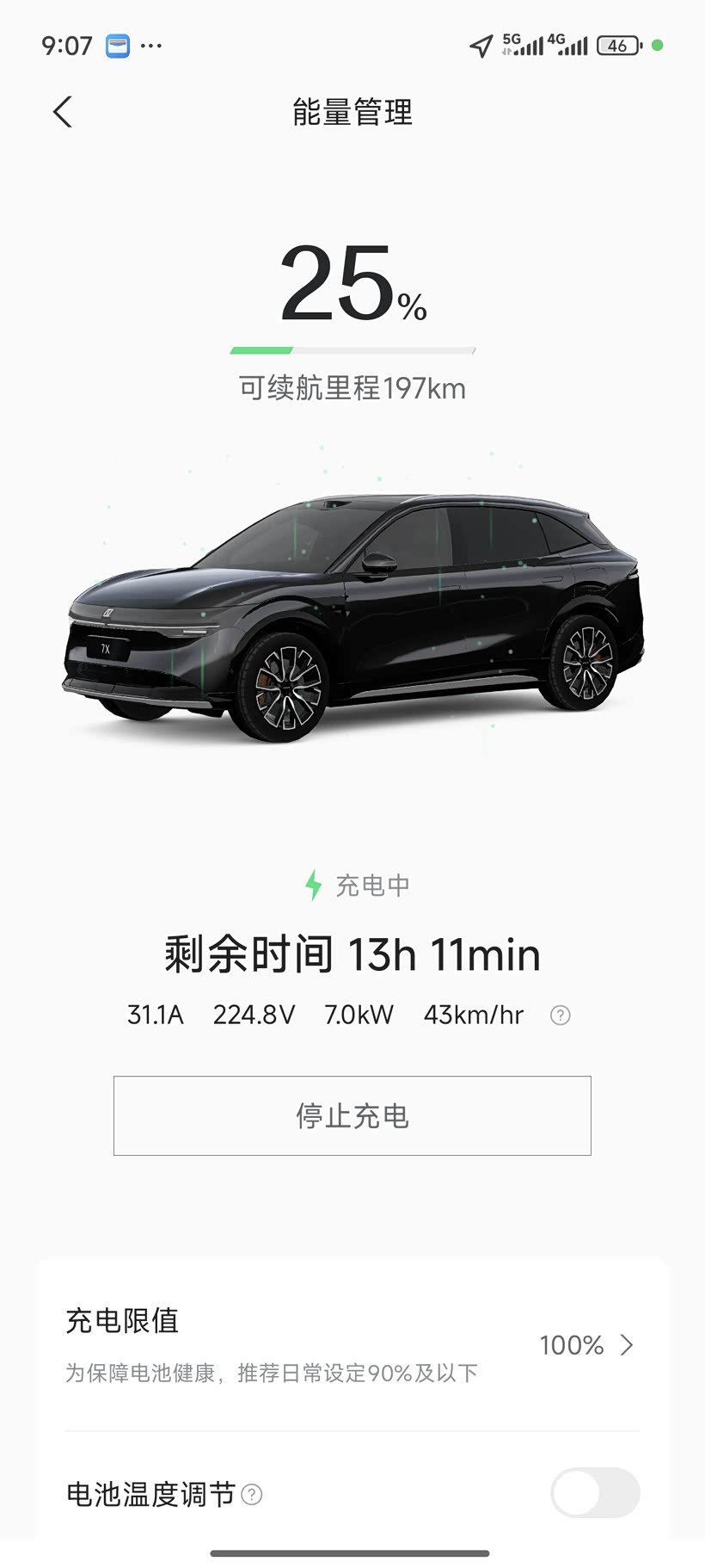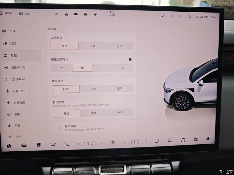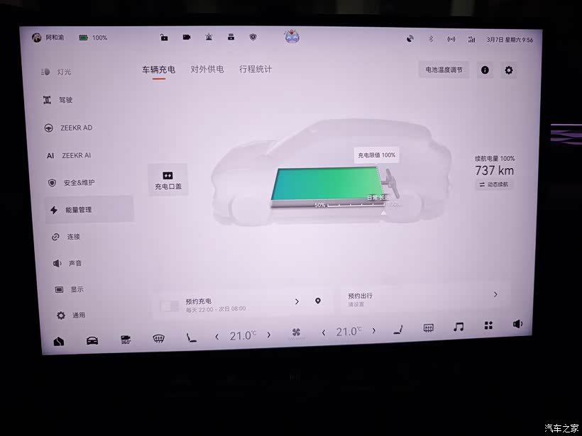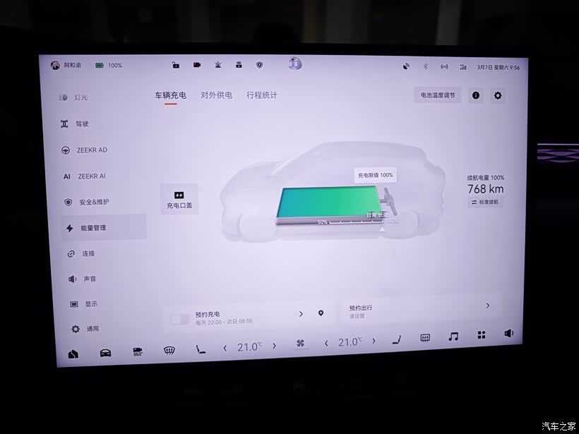 什么叫续航够用呢?我想和燃油车的使用场景相当就可以叫续航够用了吧。以我之前的油车高尔夫为例,油耗很低6.4左右,95号油每周加200元可以跑360公里左右,现在7X100度后驱,日常充电到80%,用到20%左右就充电,50度电就能跑原来200元油的里程,对我来说,这就算是够用了,既满足了日常通勤使用,又能很好的在电池最佳工况区间使用,吾甚是满意。驾驶设置如图,我一直使用的动能回收低,一来是和燃油车的驾驶感受一样,没有强力拖拽感,只有和发动机转速减速的顺滑,让乘坐的家人不会晕车。二来我的理解是让动能尽量在不踩刹车的情况下使用干净,动能回收太多反而浪费造成能耗增加。需要注意的是表显通常比实际使用的能耗低1~2度,按我自己的驾驶习惯,城区国道通勤里程超过动态续航,是CLTC续航的94折左右,从充满校准也能看出,显示CLTC768(刚充满我看手机是770,晚了1小时下楼就变768了),动态续航显示737。总得使用下来就是,满电高速能开480公里,满电城市拥堵能开590公里,满电国道能开700公里,这就是我每天90公里上下班,周末180公里高速回家,1年半安全行驶55000多公里下来总结的经验,可能有些片面,只是针对我个人的感受偏多,各位看官老爷轻喷,哈哈哈。