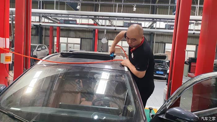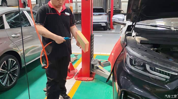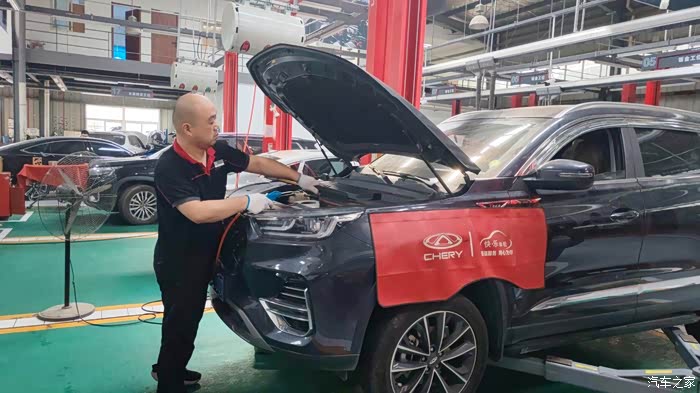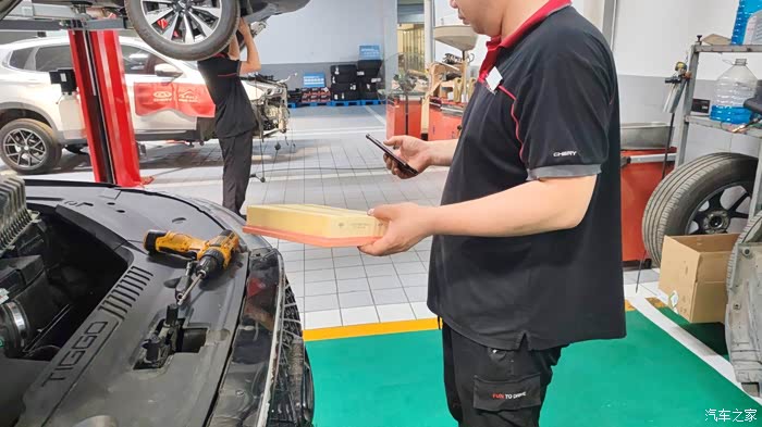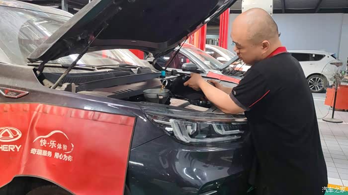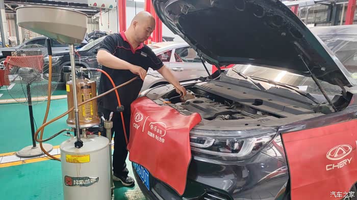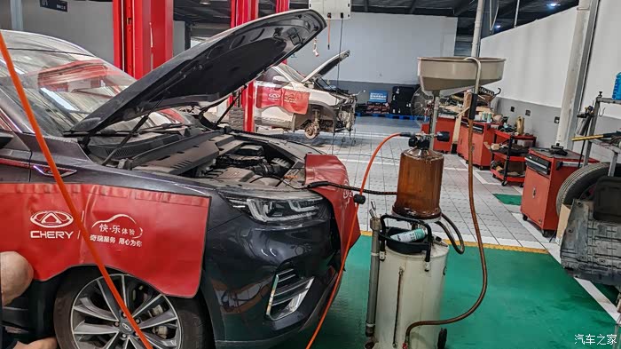 保养师傅把车开到工位之后,首先给车。贴上了磁吸式外观保护垫,车辆支撑到位之后,一是打开引擎盖,先用高压气体对引擎舱进行了清理。二是进行放机油更换机油滤芯工序。先用抽油机把90%的机油抽出来,再把车辆升起来通过机油口。把剩余的机油放到收油桶。然后更换新的机油滤芯。三是免费补充玻璃水。这个相当不错的,把你车辆的玻璃水免费给补充到满。四是加机油。我的瑞虎8plus加4升的一桶就可以了。加完之后会从底部的加油口检查是否有漏液现象。五是检查胎压。用气压表对4个车轮的胎压进行检查,如果低了会补压,高了进行放压。一般前轮2.5左右,后轮2.6左右。六是清理车胎石子。检查车胎是否夹了小石子,如果有的话使用专用工具,把小石子清理掉。七是更换空气滤芯。一般来说空气滤芯是5000公里检查,如果不脏的话,用高压气体吹后装回。1万公里的时候就必须要更换。我这次是直接更换了。八是检查电池状况。用专用的检测仪对电瓶进行检测,看有无问题。九是对天窗进行维护。检查天窗排水口是否有堵塞现象,如果堵了进行疏通。十是更换空调滤芯。空调滤芯在副驾驶的手套箱里边。先把手套箱拆卸之后,进行更换即可。十一是对保养里程进行清零。通过仪表盘。找到相应的选项,进行清零即可。如果里程达到5000,就会提示进行包养。十二是洗车。在所有保养项目做完之后就是免费洗车。这个还是给点赞的。