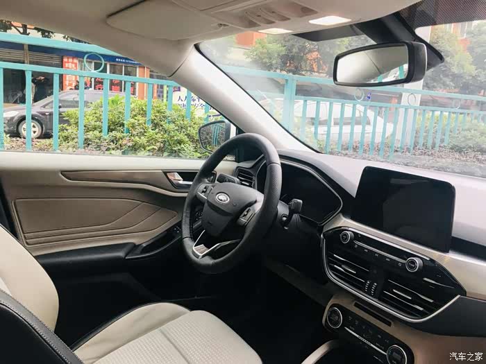 舒适性:座椅是皮织混搭的,看着还不错,坐起来也很舒服,试驾的时候体验过福克斯车内静音效果,比日系”死鱼”要好。